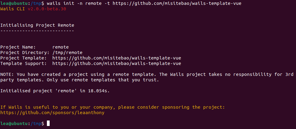 With v2, I wanted to empower the community by giving you the ability to create and host templates yourselves, rather than rely on the Wails project. So now you can create projects using community supported templates! I hope this will inspire developers to create a vibrant ecosystem of project templates. I'm really quite excited about what our developer community can create!