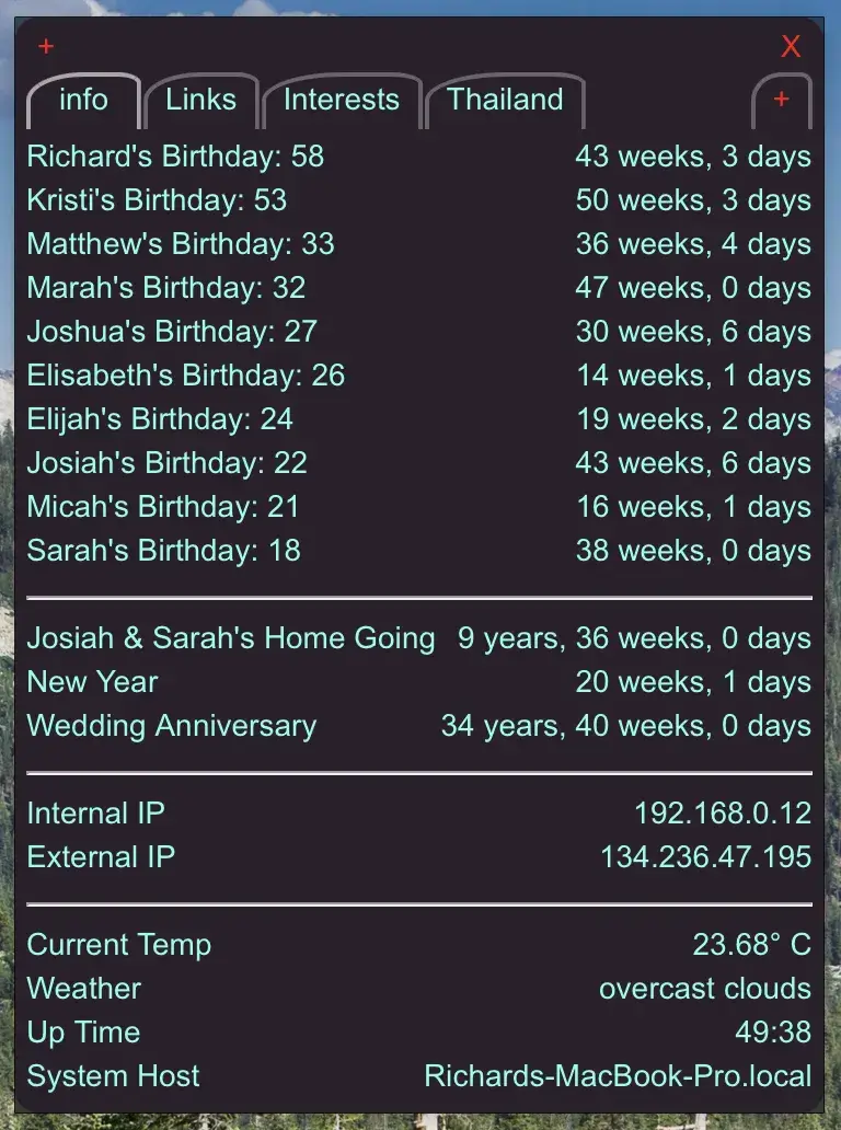 ScriptBar это программа для отображения вывода встроенного сервера Node-Red в приложении EmailIt. Он также отображает вывод скриптов в вашей системе. ScriptBar не помещает их в меню, но все они в удобном окне для удобного просмотра. Вы можете открыть несколько вкладок, чтобы показать множество различных вещей. Вы также можете держать ссылки на наиболее посещаемые вами веб-сайты.